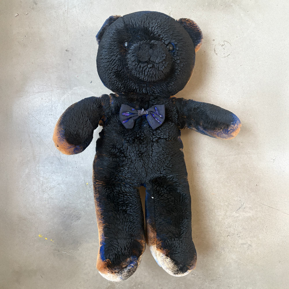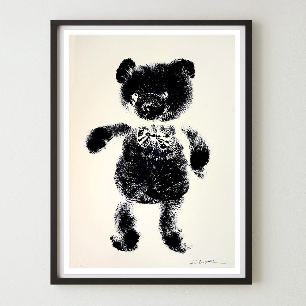 A discarded teddybear was dipped in ink, pushed on museumpaper and left his mark forever.
