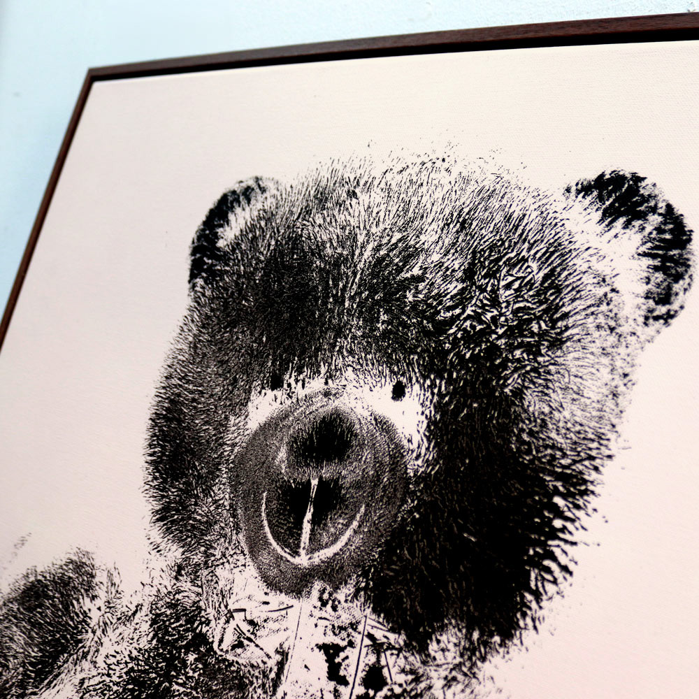 A discarded teddybear was dipped in Indian black ink, pushed on canvas and left his mark forever.